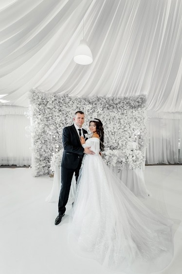 Вместительный белый шатер с воздушной текстильной драпировкой внутри. Прекрасно подойдет для любого события. Живописная территория для ваших прогулок и фотосессий с фонтанами и водопадом.